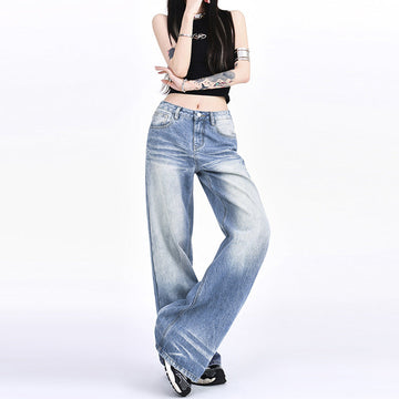 Mopping Loose Worn Looking Washed-out Denim Straight Wide-leg Pants