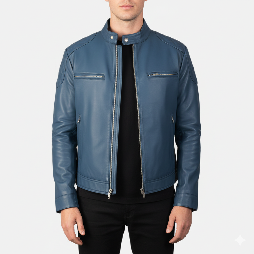 Men's Gatsby Quilted Blue Leather Biker Jacket – The Jacket Maker