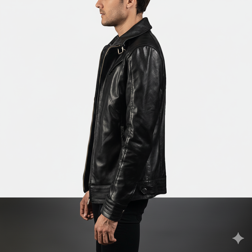 Redefine classic outerwear with the Ionic Black Leather Jacket, a sleek essential crafted from premium...