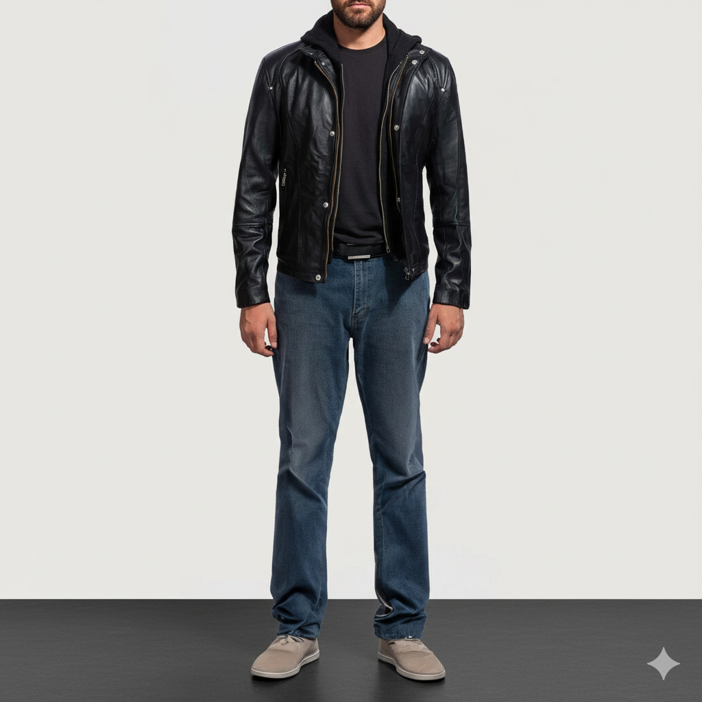 Elevate your style with the Legacy Black Leather Biker Jacket, a timeless piece designed for...