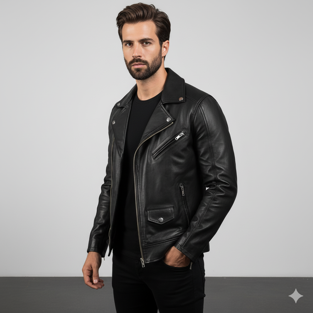 Men's Legacy Black Leather Biker Jacket – The Jacket Maker