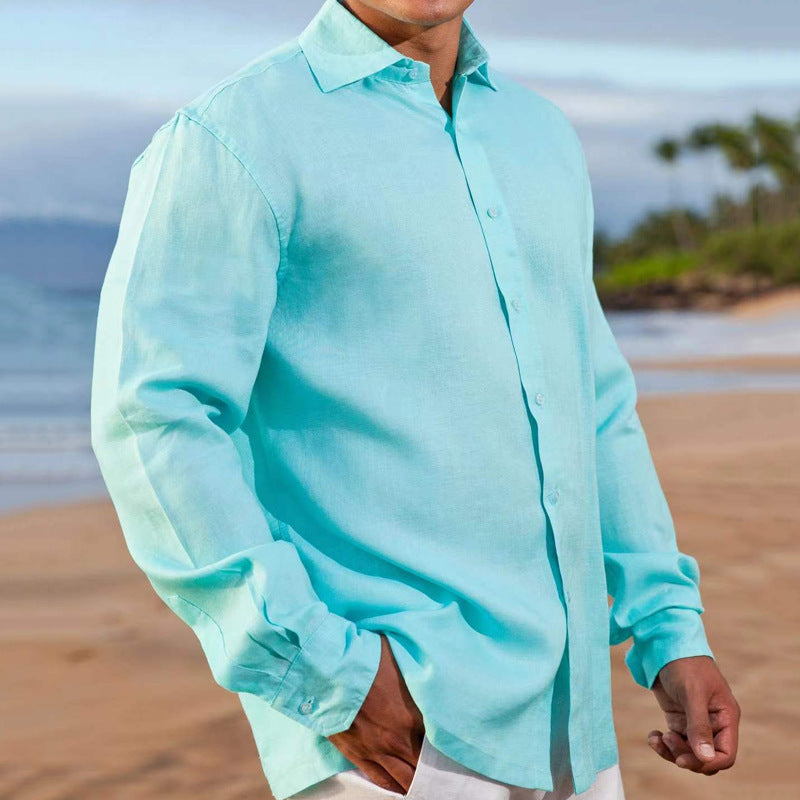 Men's Casual Stand-up Collar Door Barrel Solid Color Long-sleeved Shirt
