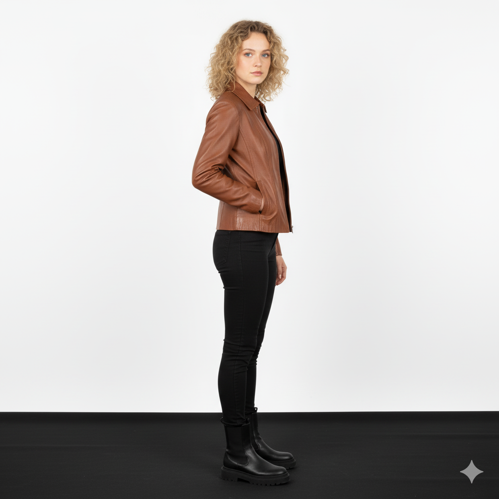 Women Colette Brown Leather Jacket - Noir Mode
