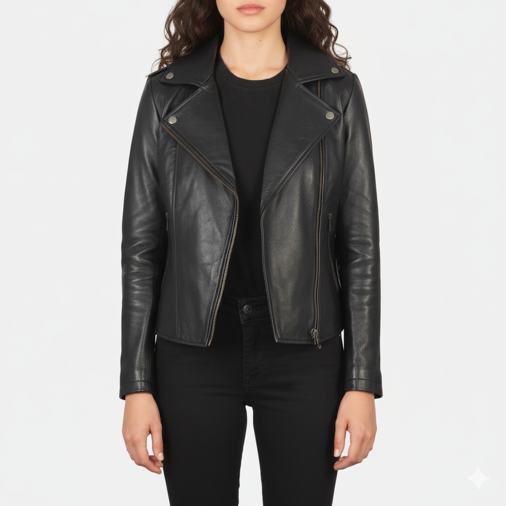 Women's Alison Black Leather Biker Jacket – Noir Mode