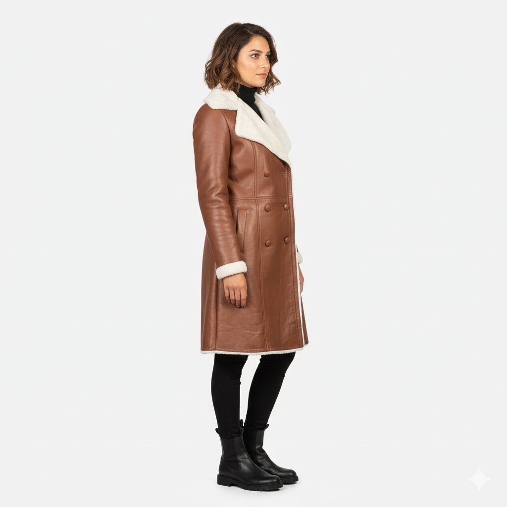 Women's Amie Brown Double Breasted Shearling Coat – Noir Mode