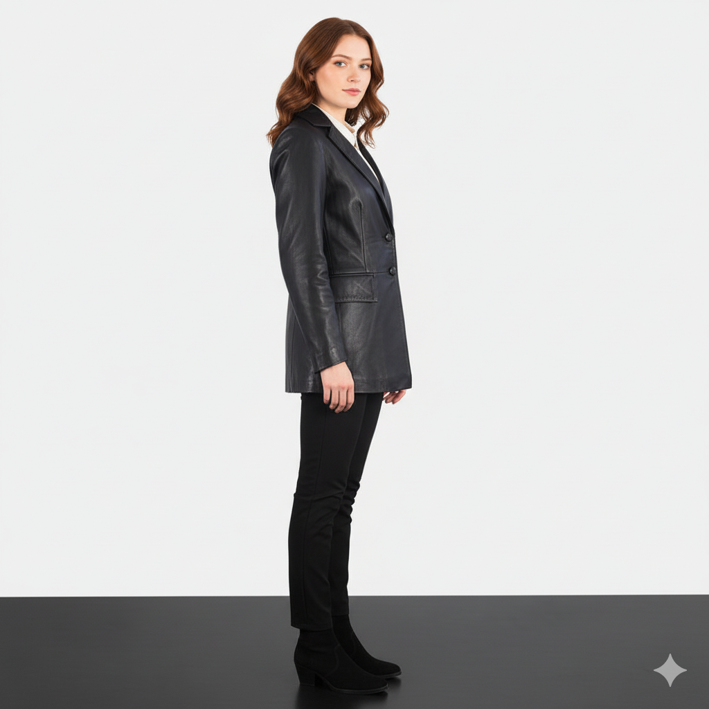 Women's Marilyn Black Leather Blazer – Noir Mode