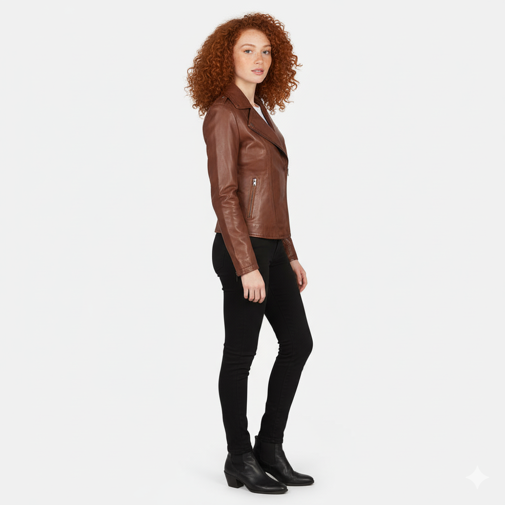 Women's Flashback Brown Leather Biker Jacket – Noir Mode