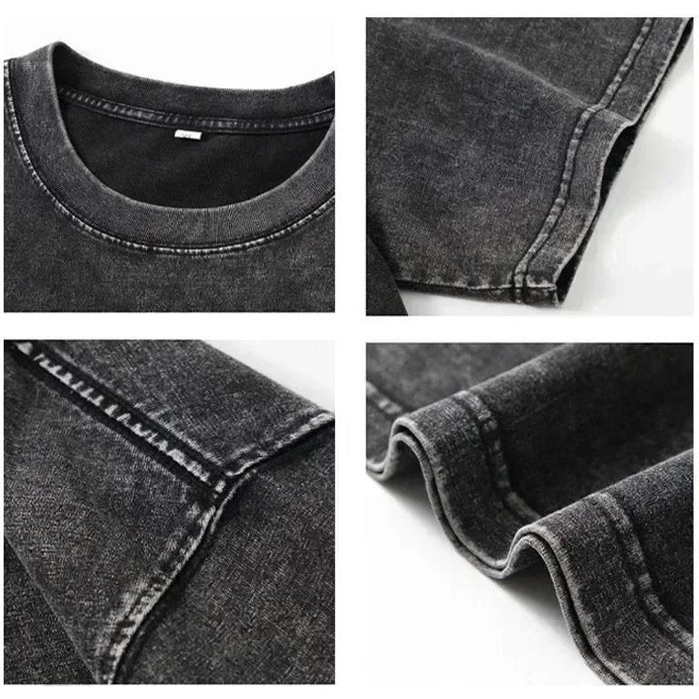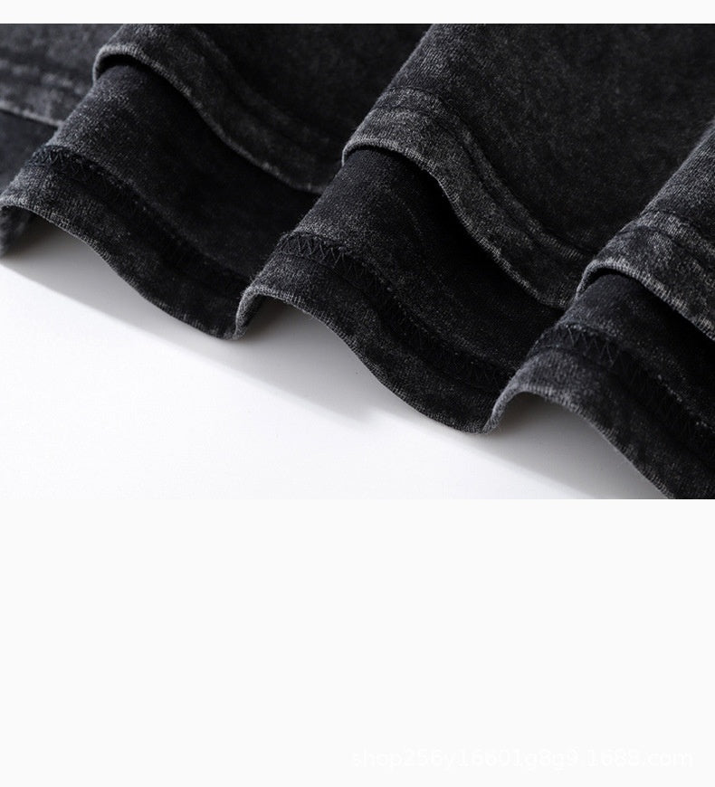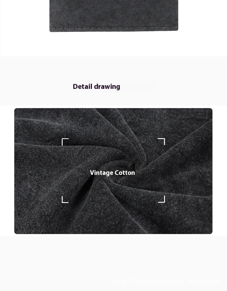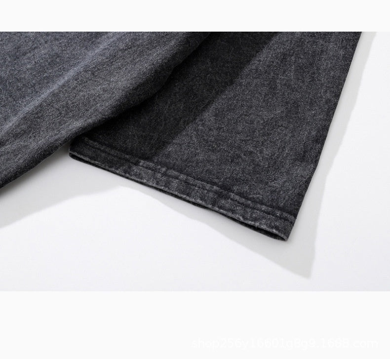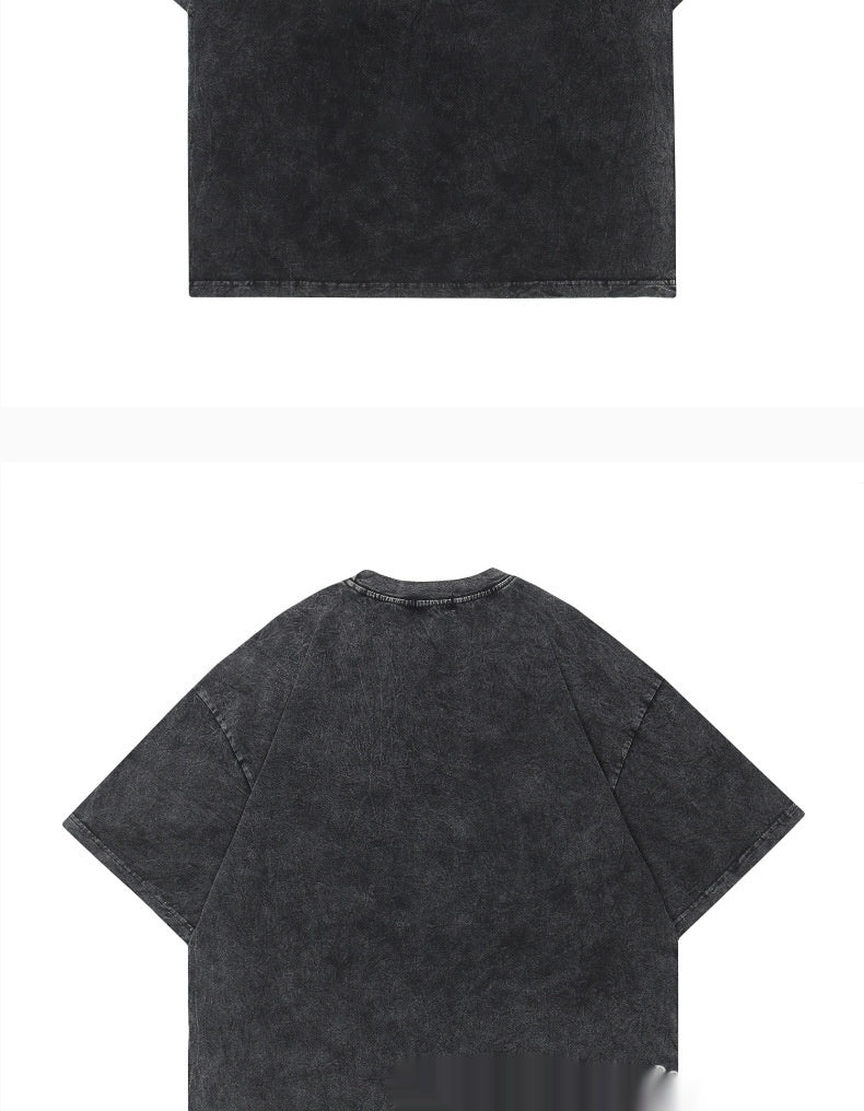 Cross-border Hot Solid Color Retro Worn Looking Washed-out T-shirt Harajuku Cotton
